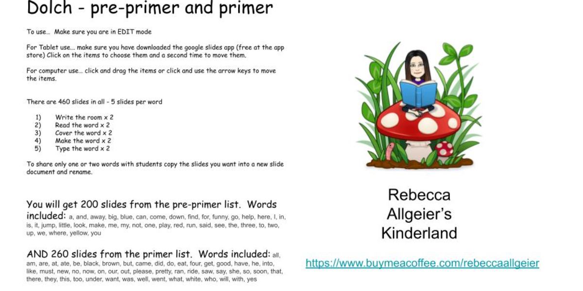 Dolch Pre-primer and Primer sight words