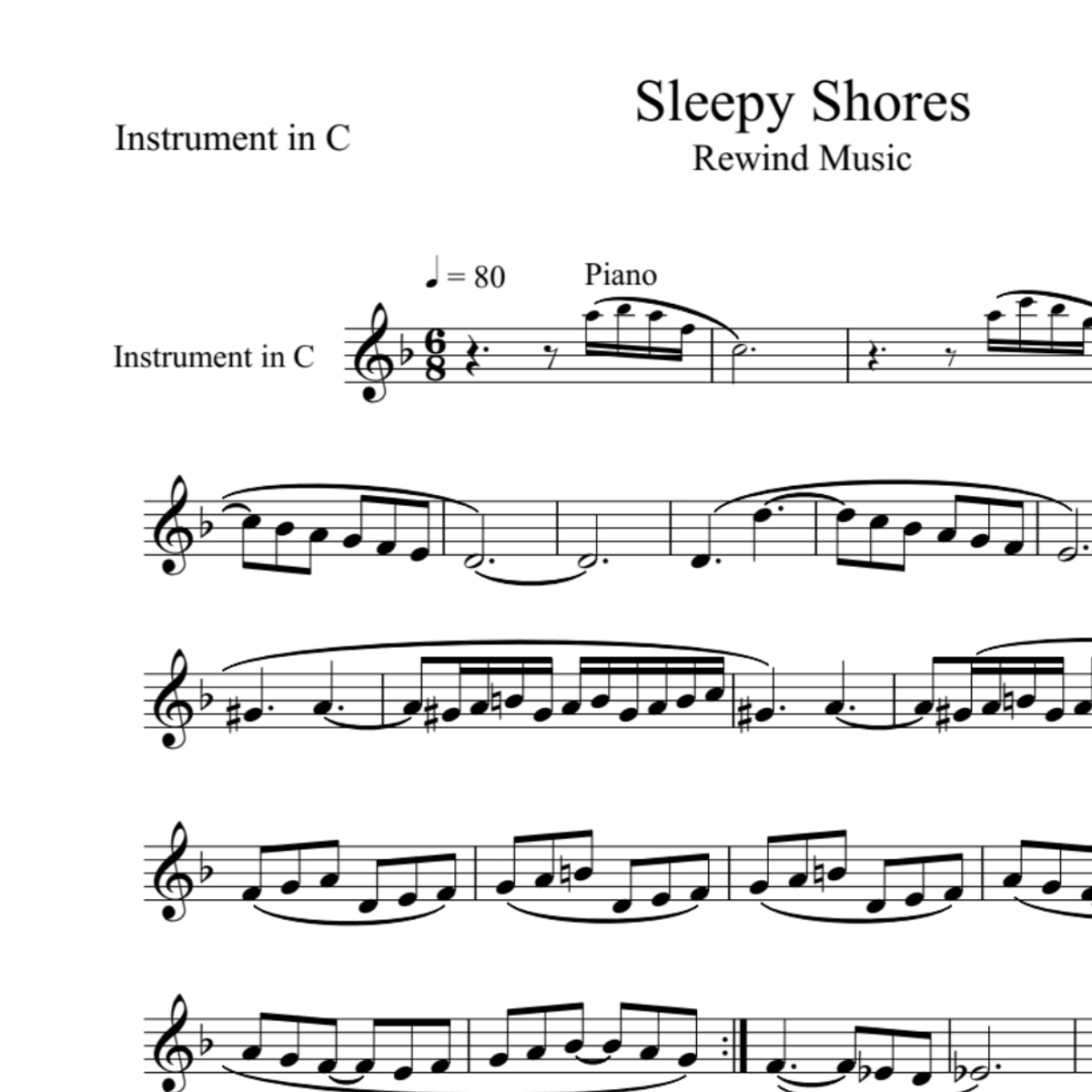 BT0136 Sleepy Shores Backing Track and Sheet Music