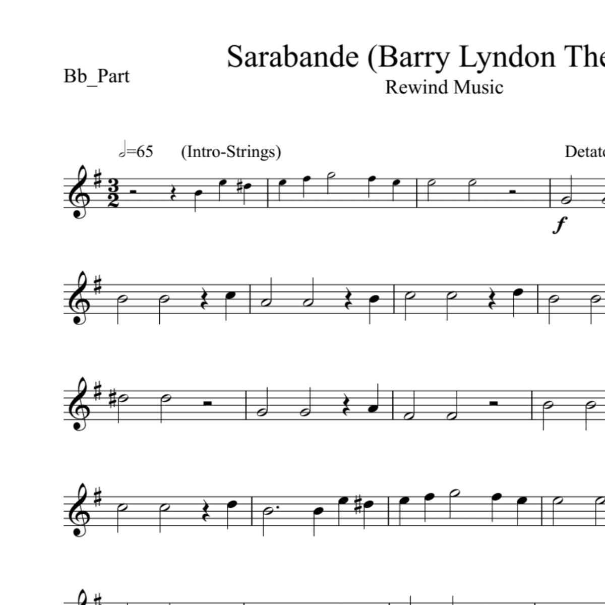 BT0067 Handel Sarabande (Barry Lyndon) Backing Track and Sheet Music
