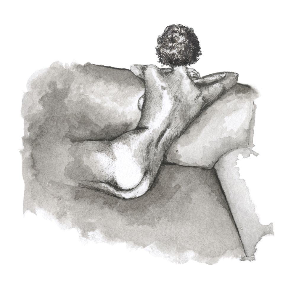 Ink wash girl on sofa