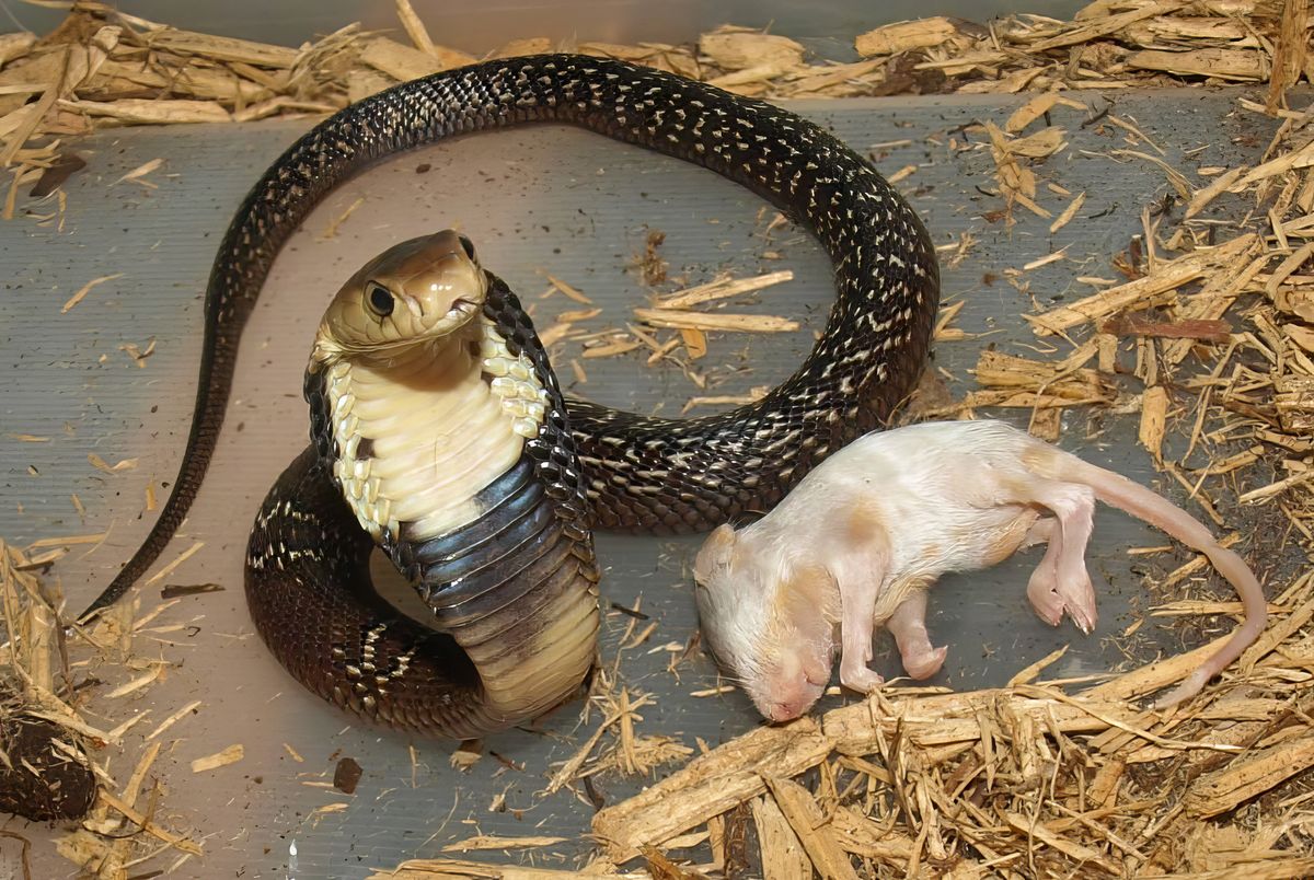Cute baby Monocled Cobra (Naja kaouthia) with its prey