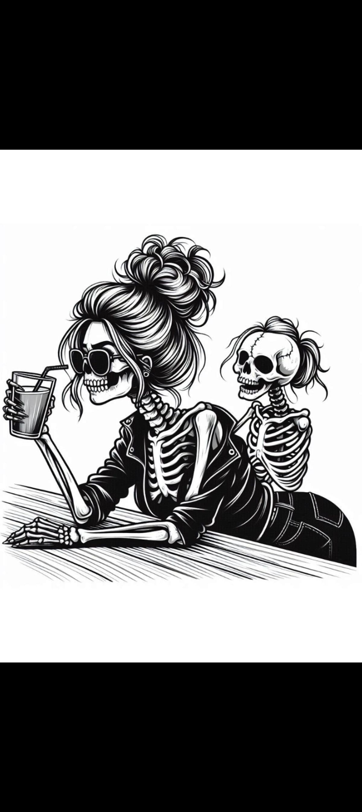 Female skeleton with feral child - Digital Print