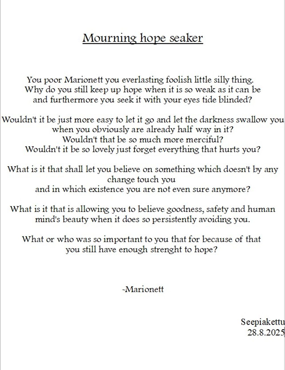 Aphorism - Mourning hope seaker