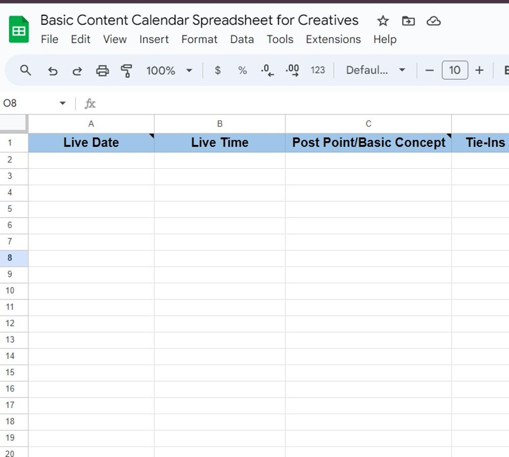 FREE Basic Content Calendar Spreadsheet
