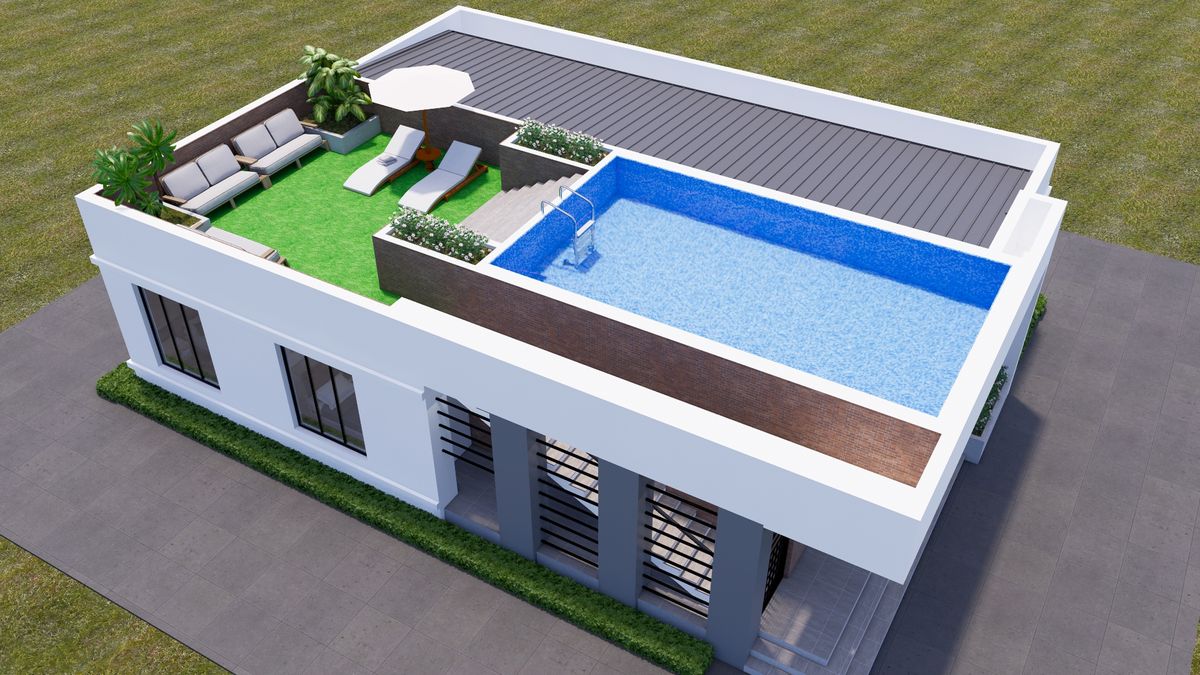 4 Bedroom Modern House Design with Pool 16m x 12m