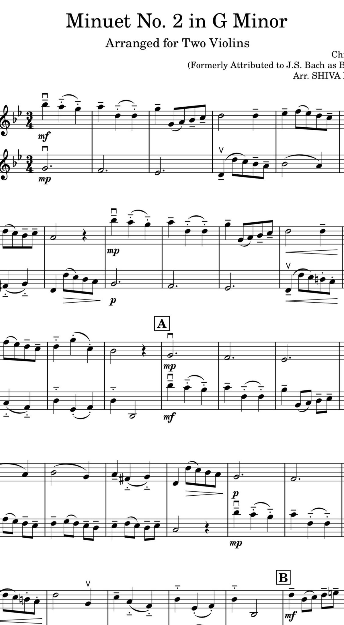Minuet in G Minor, BWV Anh. 115 - Violin Duet (PDF + Full Video)