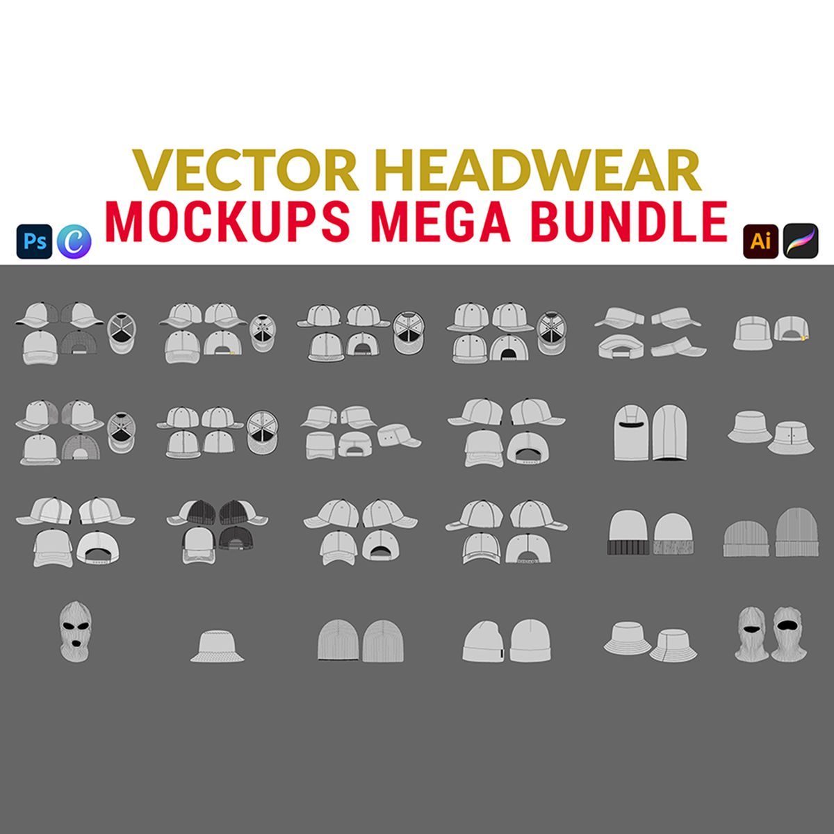 Vector Headwear Mockups MEGA BUNDLE | Hat Design Template