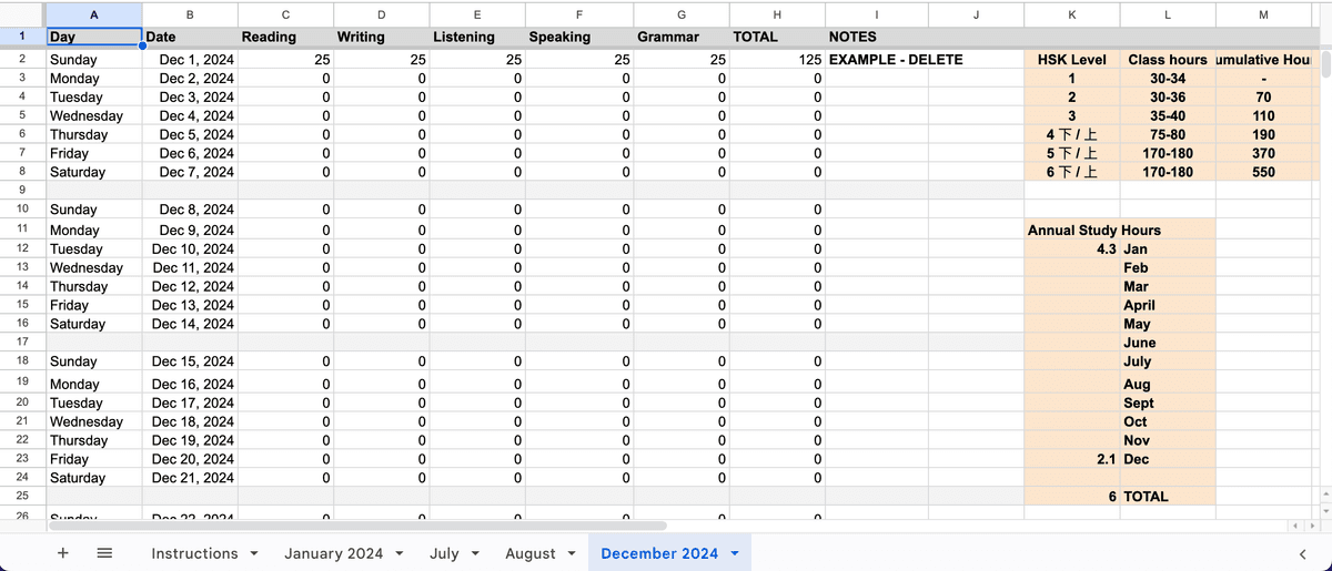 Study Hours Spreadsheet - FREE