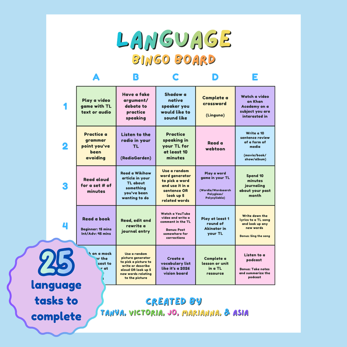 The Language Bingo Board