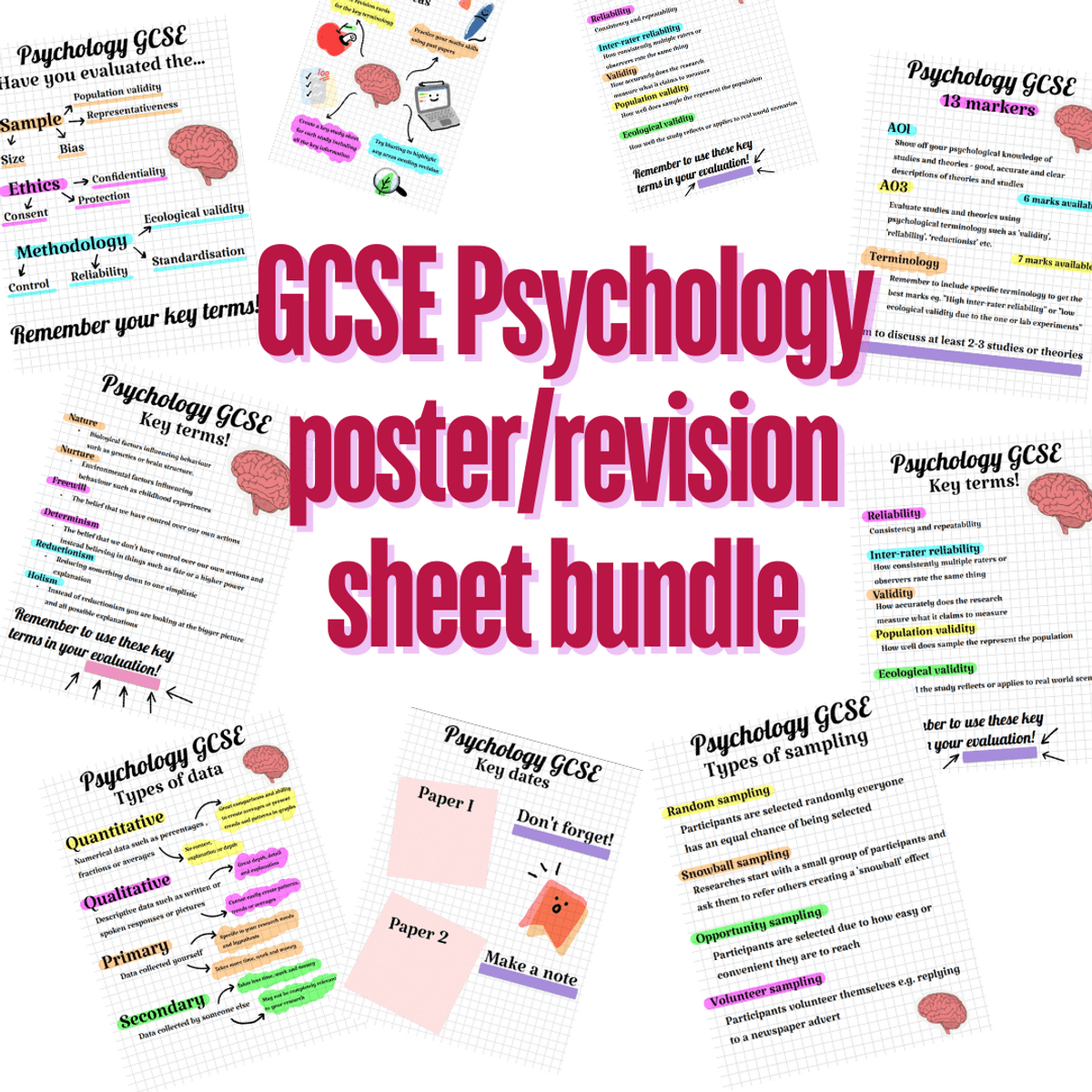GCSE OCR Psychology posters/revision sheets