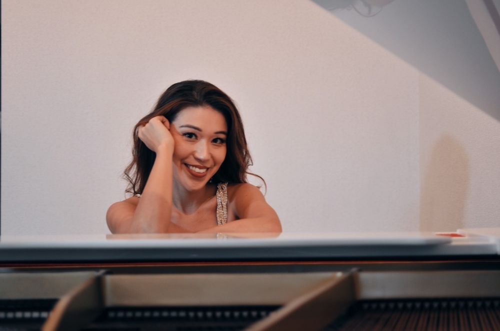 Photo shoot with a white piano