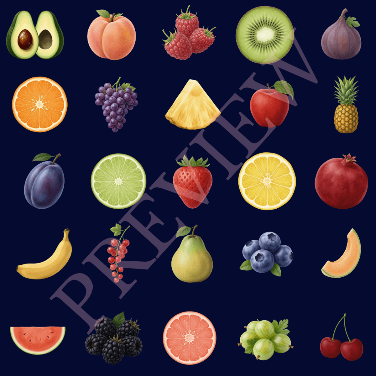 Fruits & Berries – 20 Cute PNG Clipart Elements