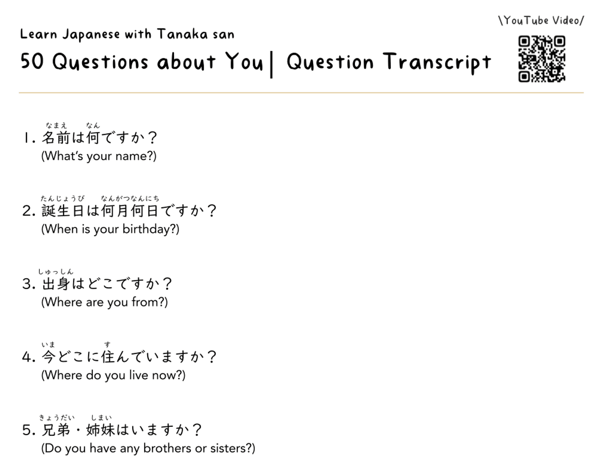Question transcript PDF | 50 Questions about Yourself