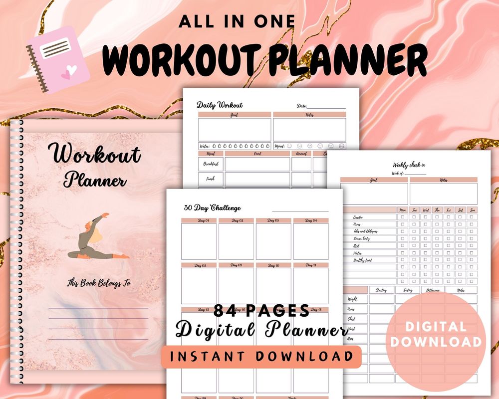 84 Pages Digital Workout Planner| Digital Exercise Tracker | PDF Digital Planner