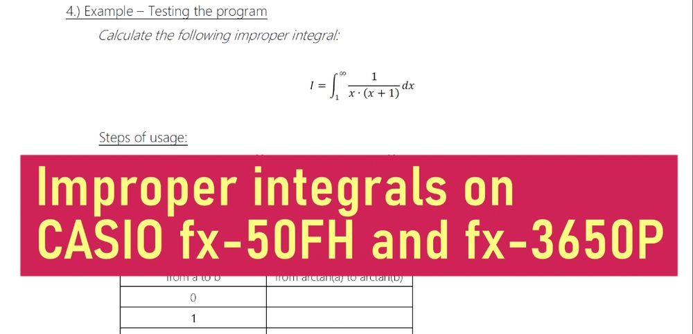 Evaluating improper integrals for CASIO fx-50FH and fx-3650P