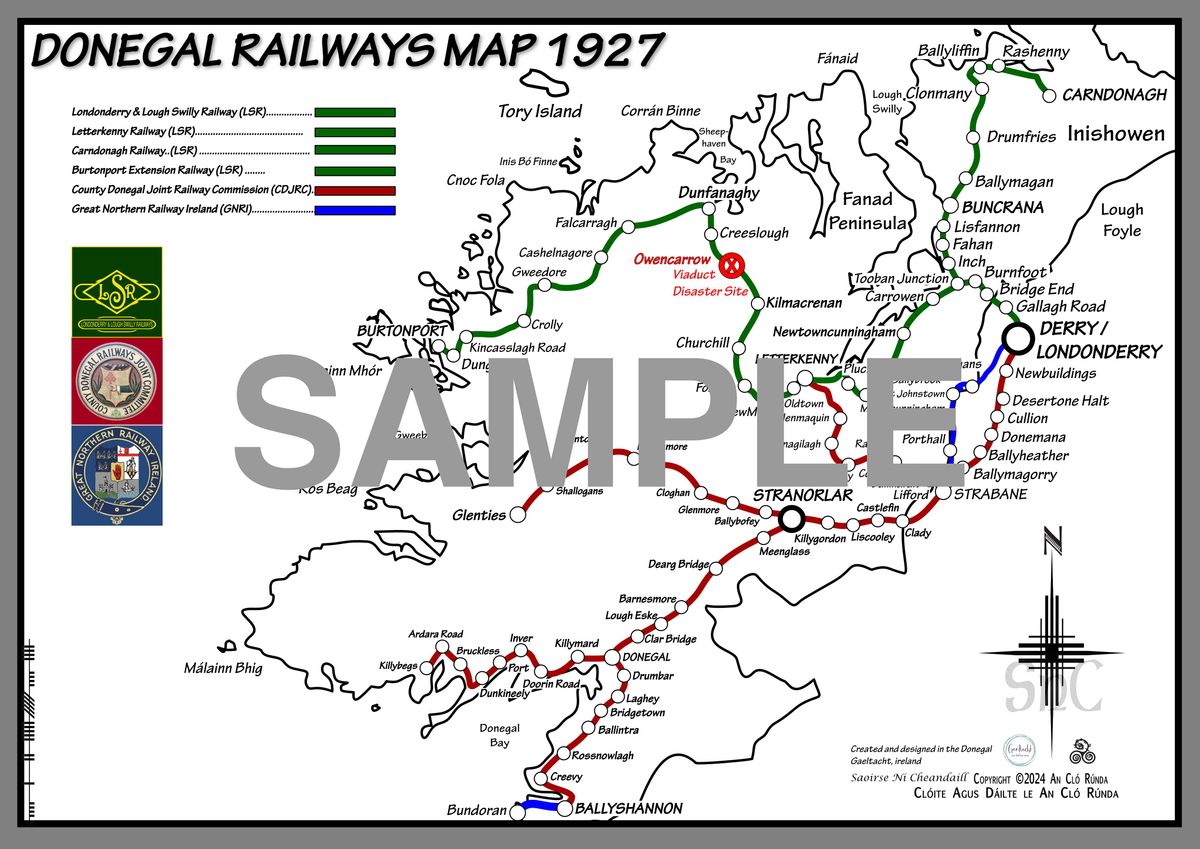 Donegal Railways Map Ireland 1927 Poster (A3 PDF)