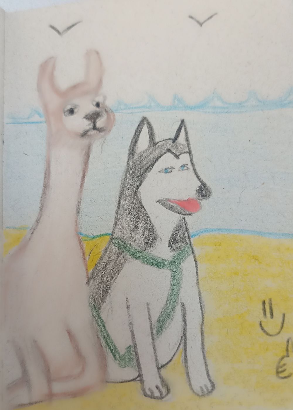 Tulia y una llama en las costas peruanas