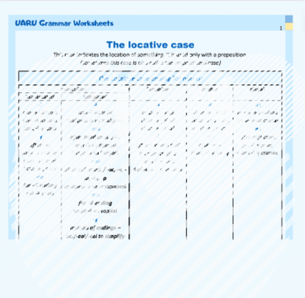 Ukrainian Grammar Worksheet "The Locative case (Місцевий відмі́нок)"
