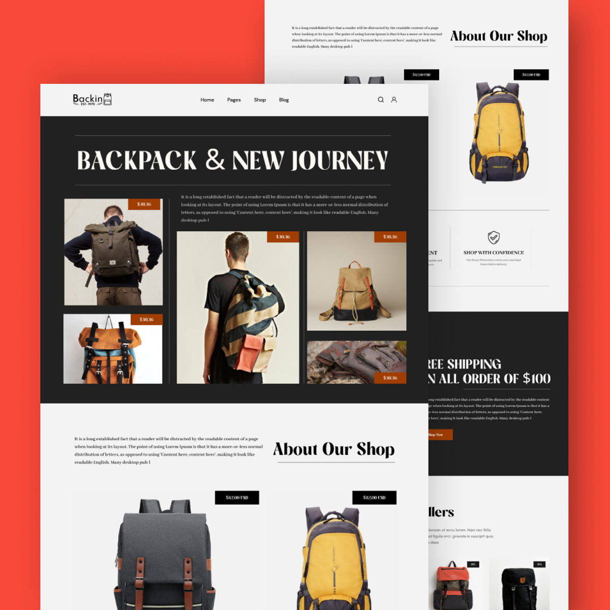 Back Pack Landing Page Design.