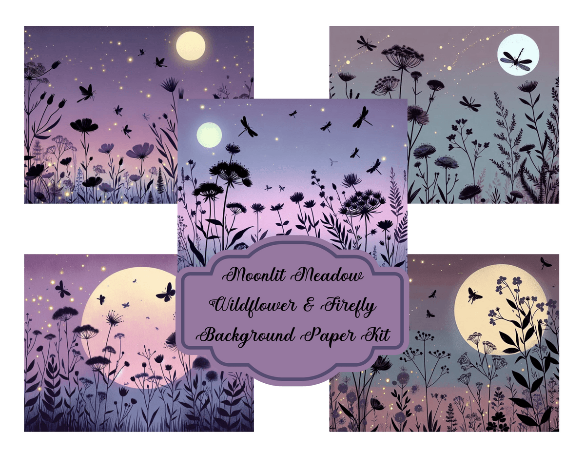 Moonlit Meadow - Wildflower & Firefly Background Paper Kit