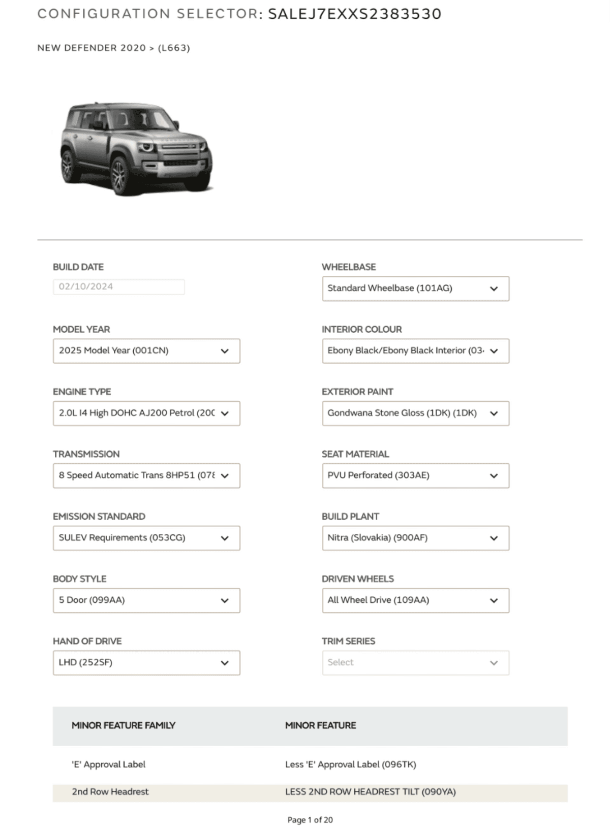 Build Sheet VIN SALEJ7EXXS2383530