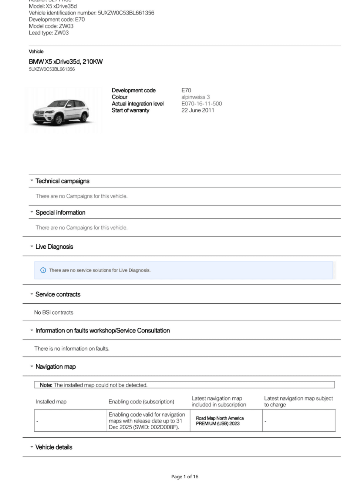 BMW Service History Report VIN 5UXZW0C53BL661356