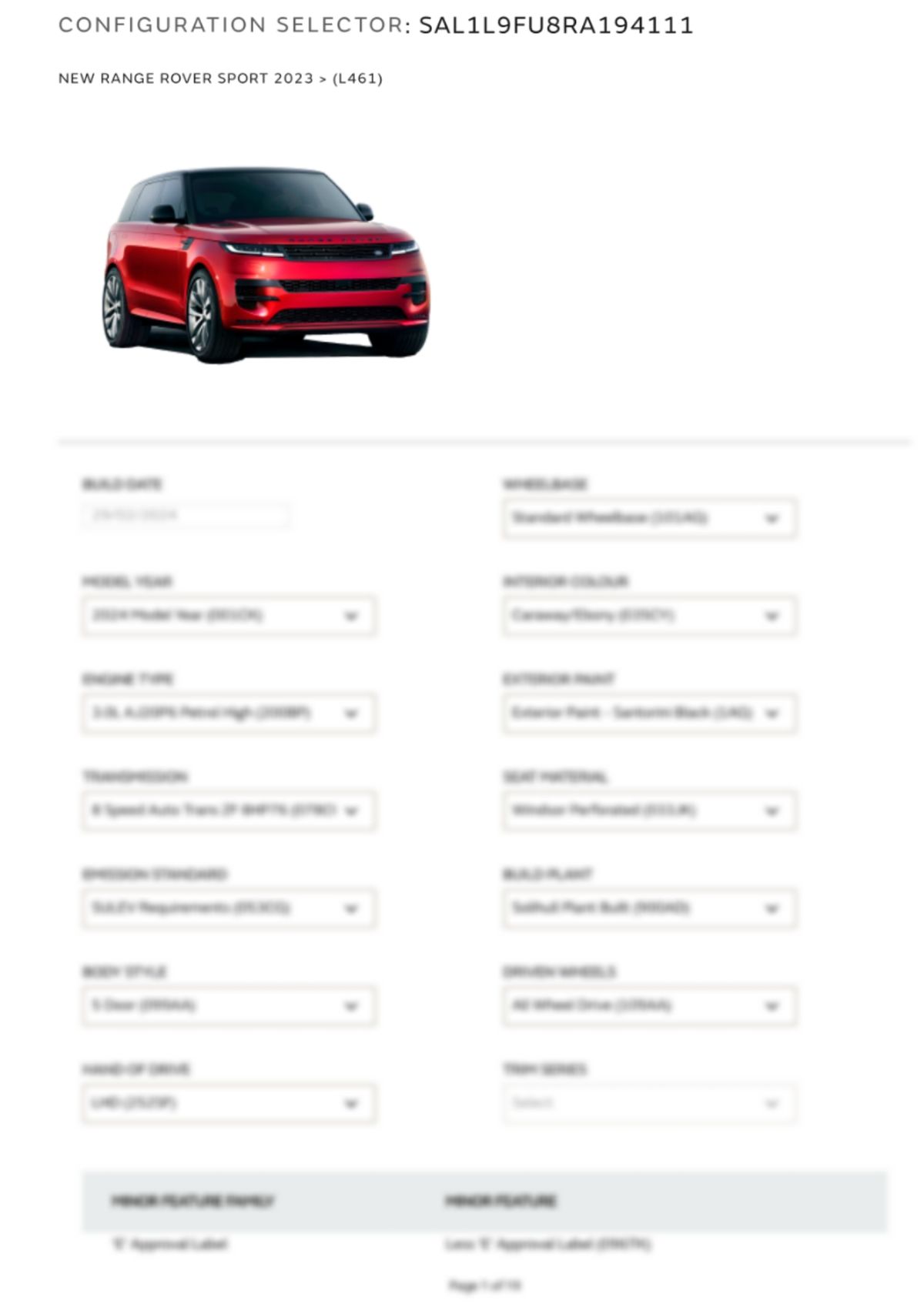 Build Sheet VIN SAL1L9FU8RA194111