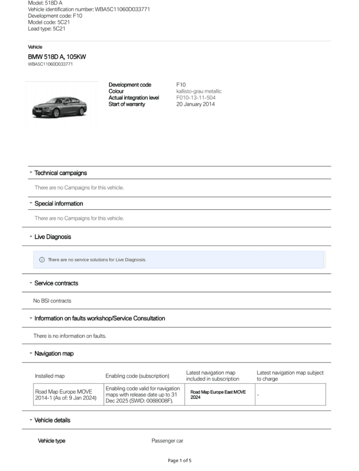 BMW Service History Report VIN WBA5C11060D033771