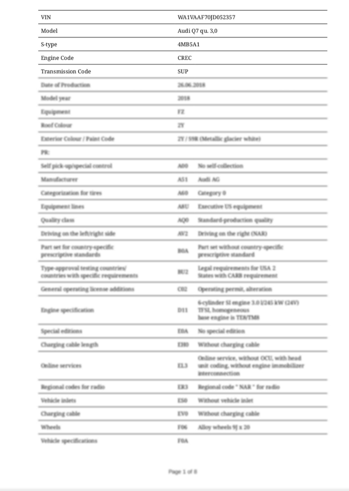 Build Sheet VIN WA1VAAF70JD052357