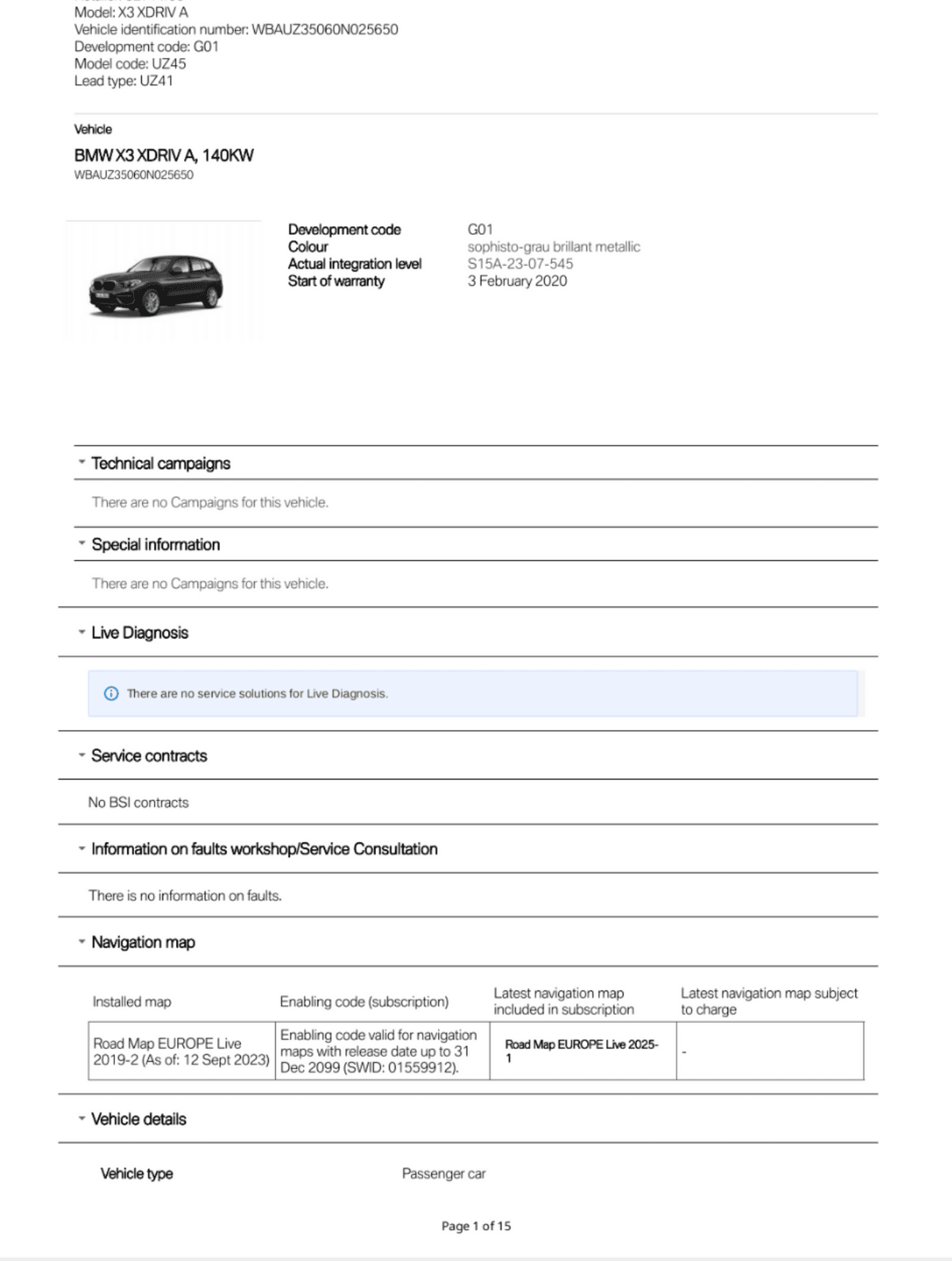 BMW Service History Report VIN WBAUZ35060N025650