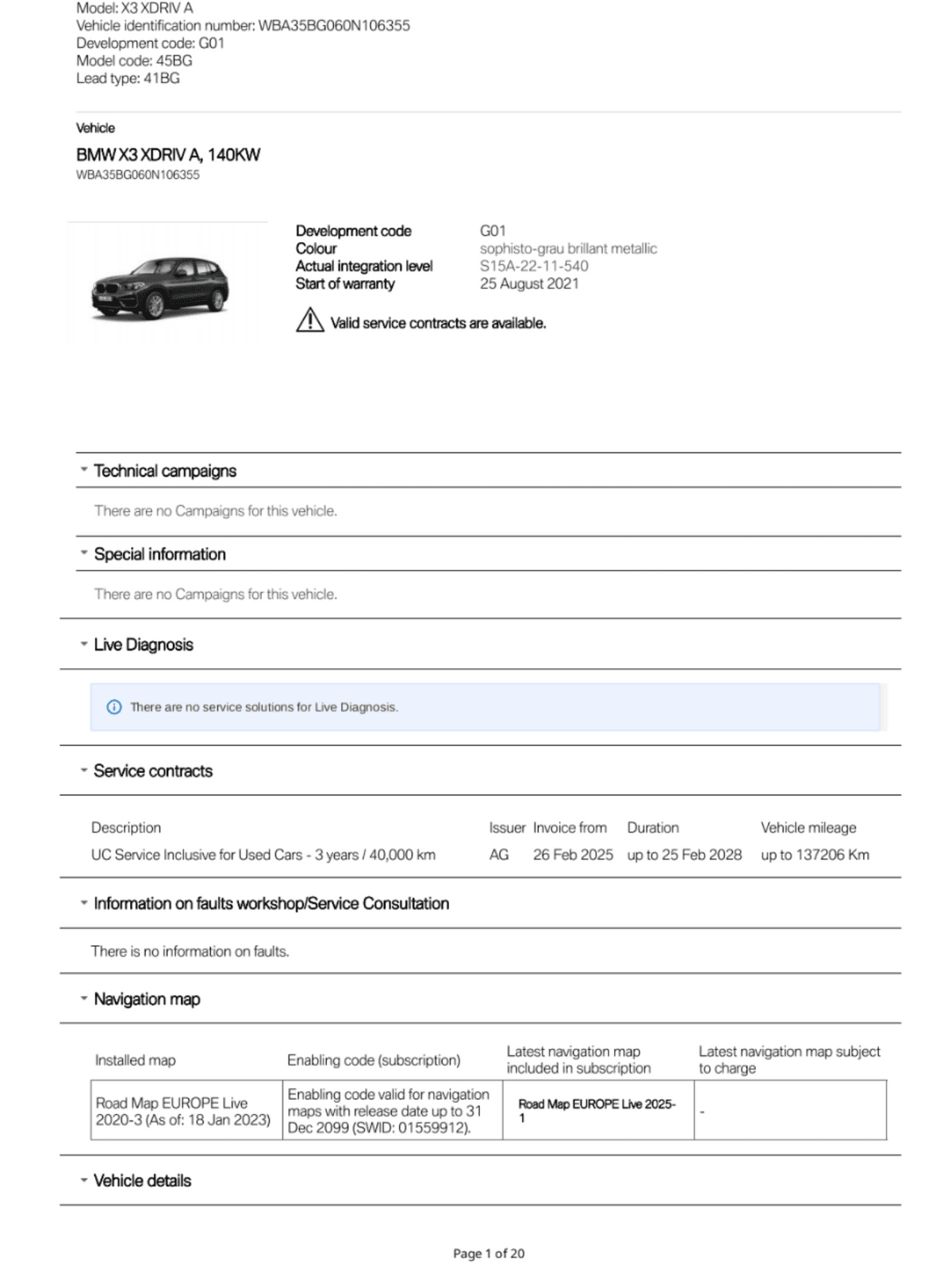 BMW Service History Report VIN WBA35BG060N106355