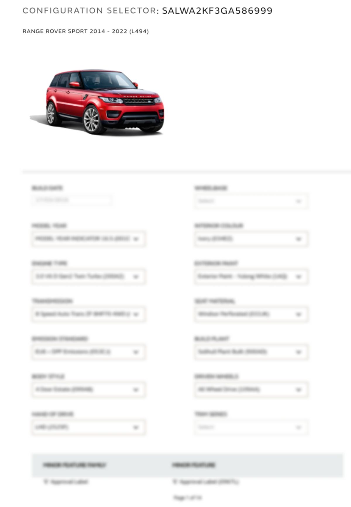 Build Sheet VIN SALWA2KF3GA586999