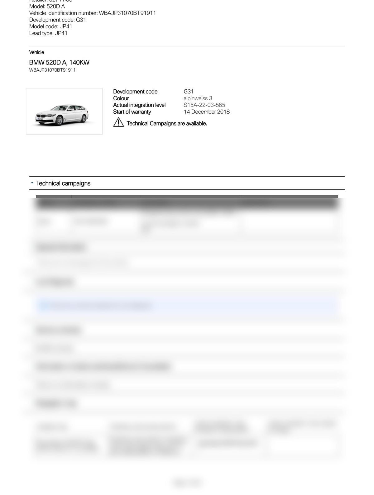 Service History Report VIN WBAJP31070BT91911
