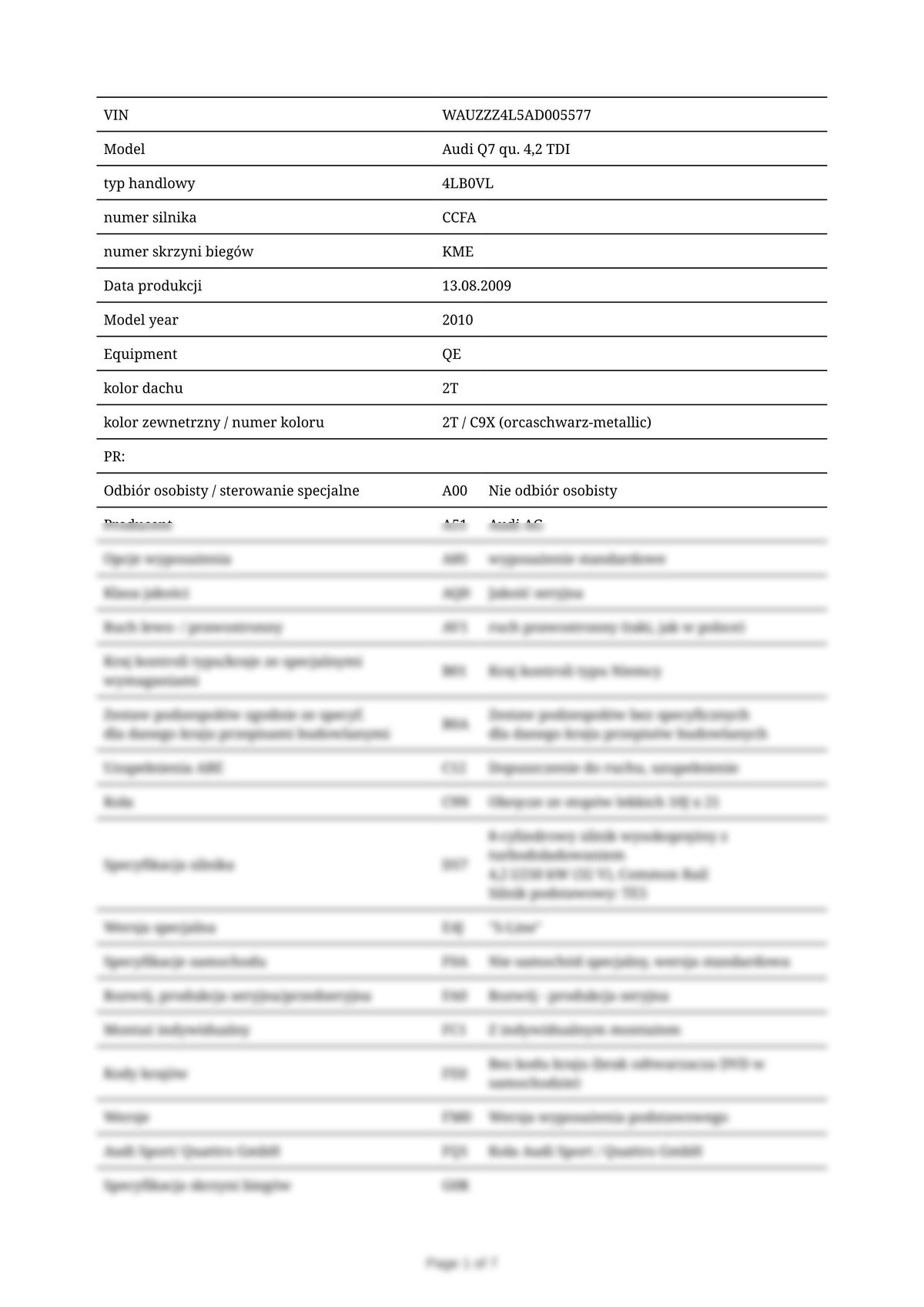 Build Sheet VIN WAUZZZ4L5AD005577