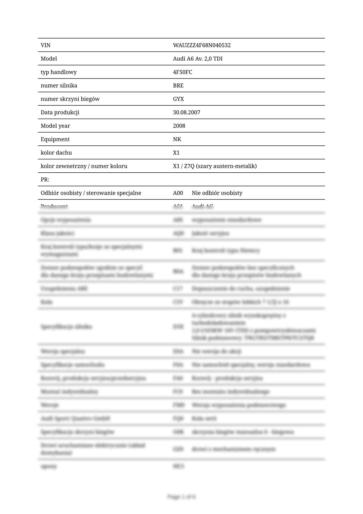Build Sheet VIN WAUZZZ4F68N040532