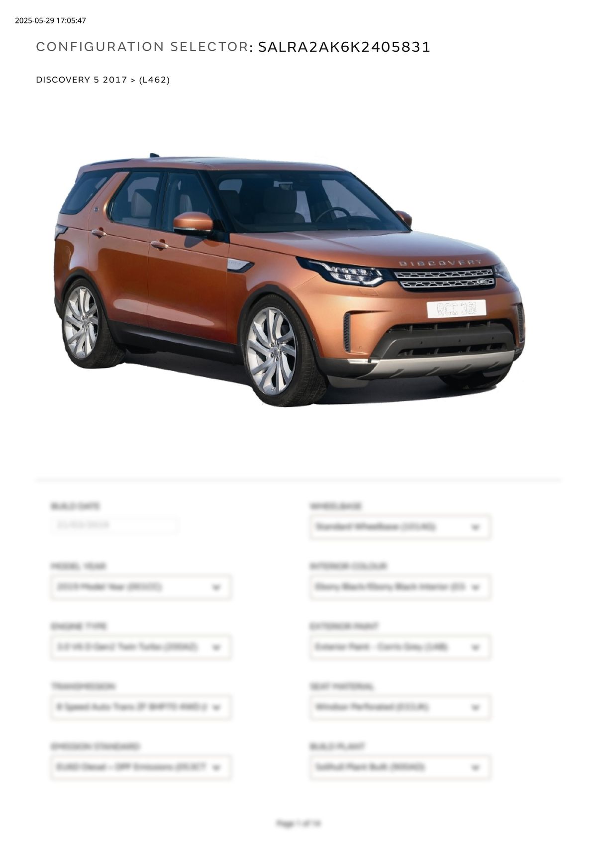 Build Sheet VIN SALRA2AK6K2405831