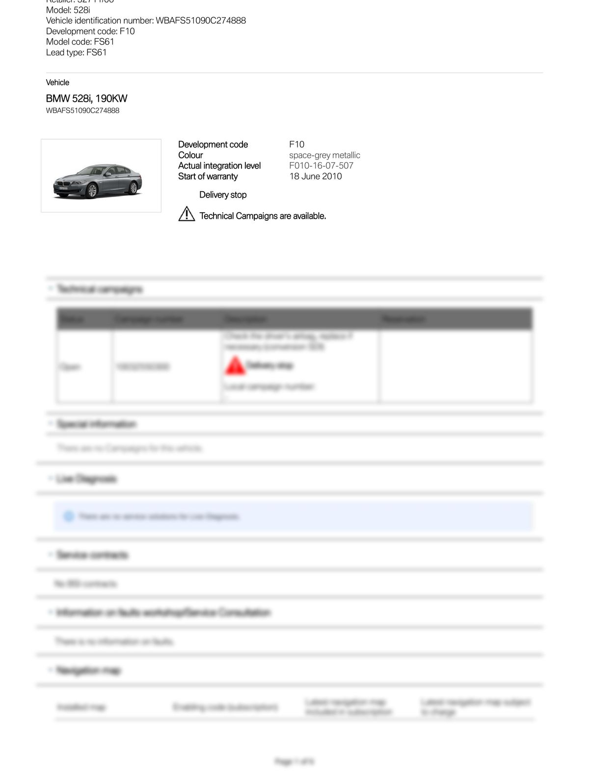 Service History Report VIN WBAFS51090C274888