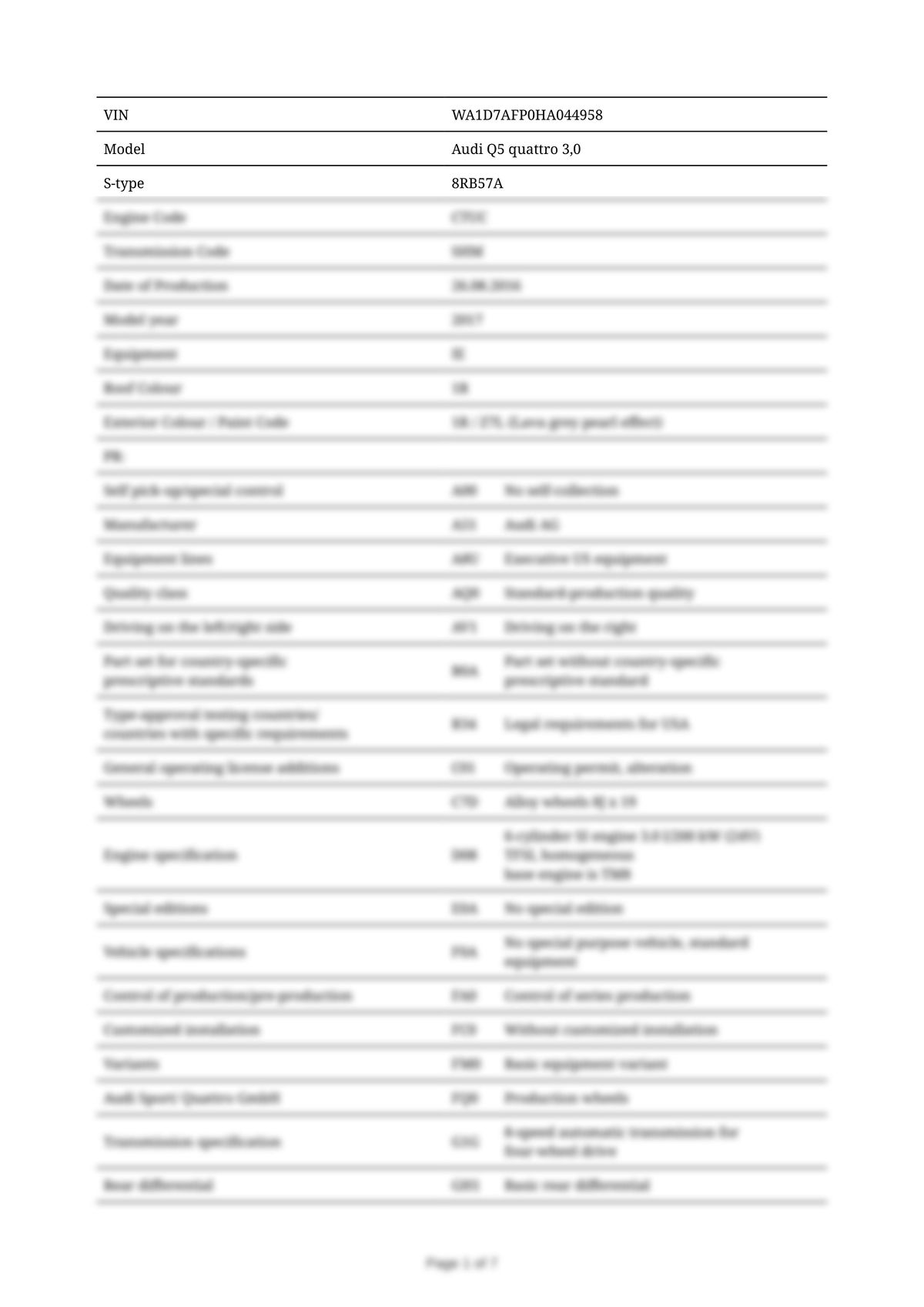Build Sheet VIN WA1D7AFP0HA044958
