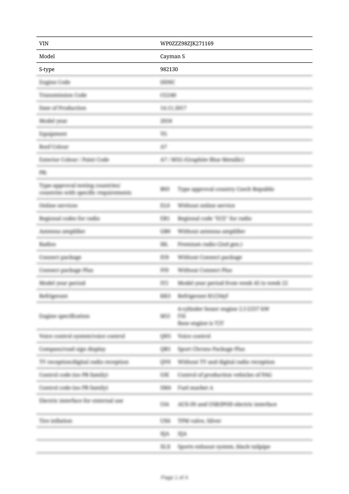 Build Sheet VIN WP0ZZZ98ZJK271169