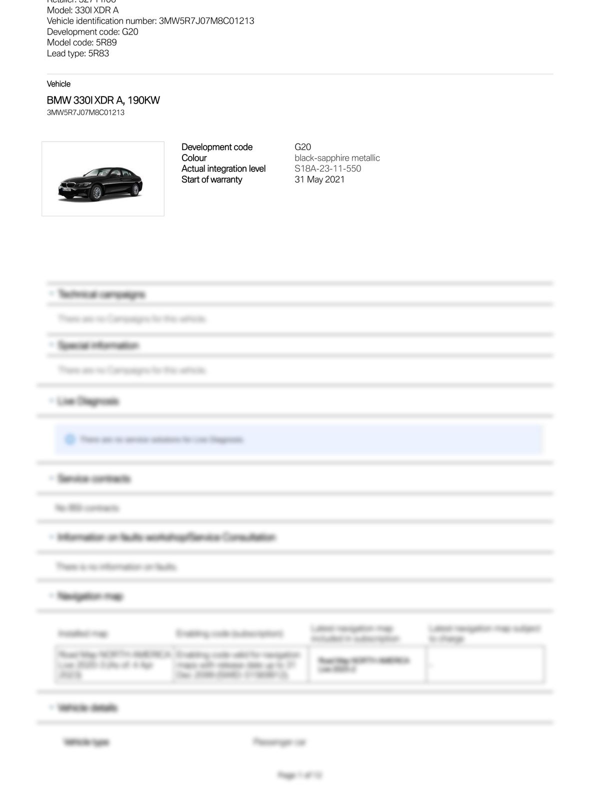Service History Report VIN 3MW5R7J07M8C01213