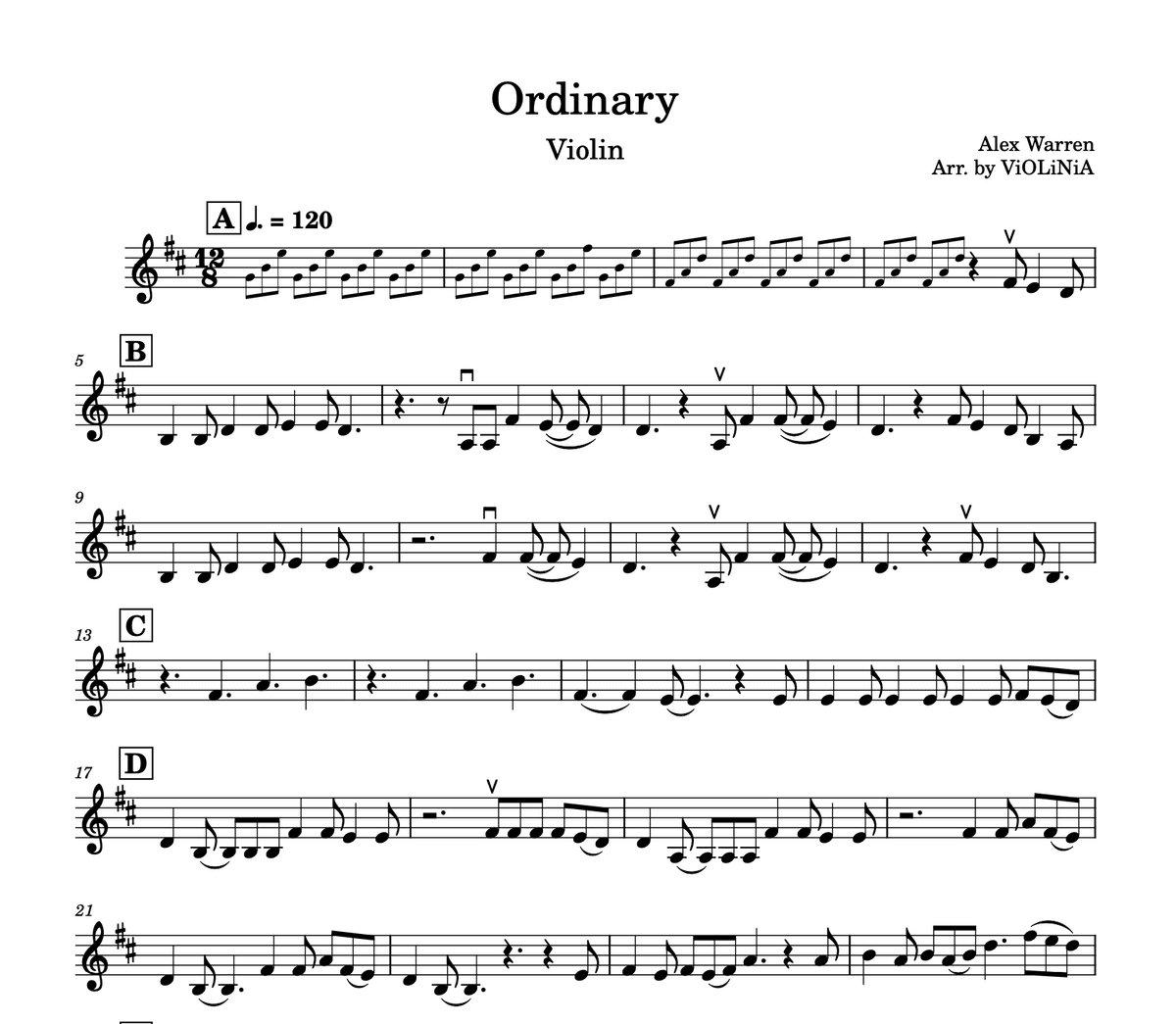 Alex Warren - Ordinary I Violin Sheet Music