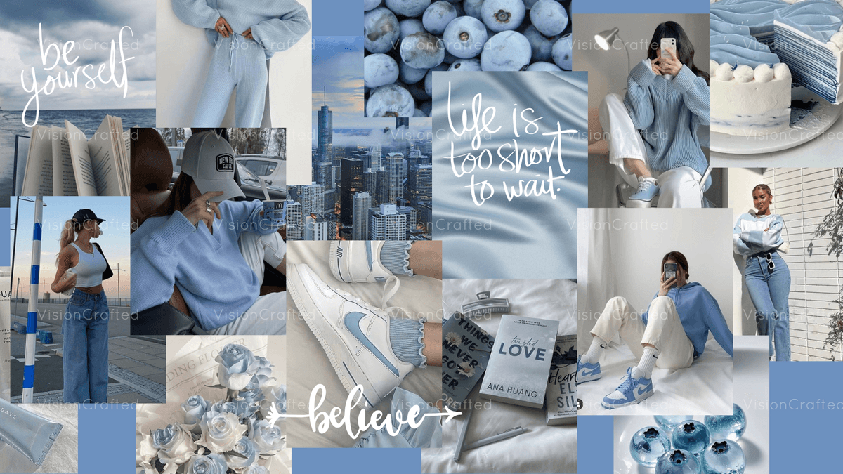 Light Blue City Girl Aesthetic Vision Board - PC Wallpaper