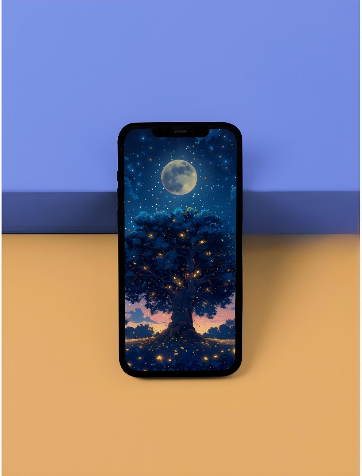 Giant tree in starry night wallpaper