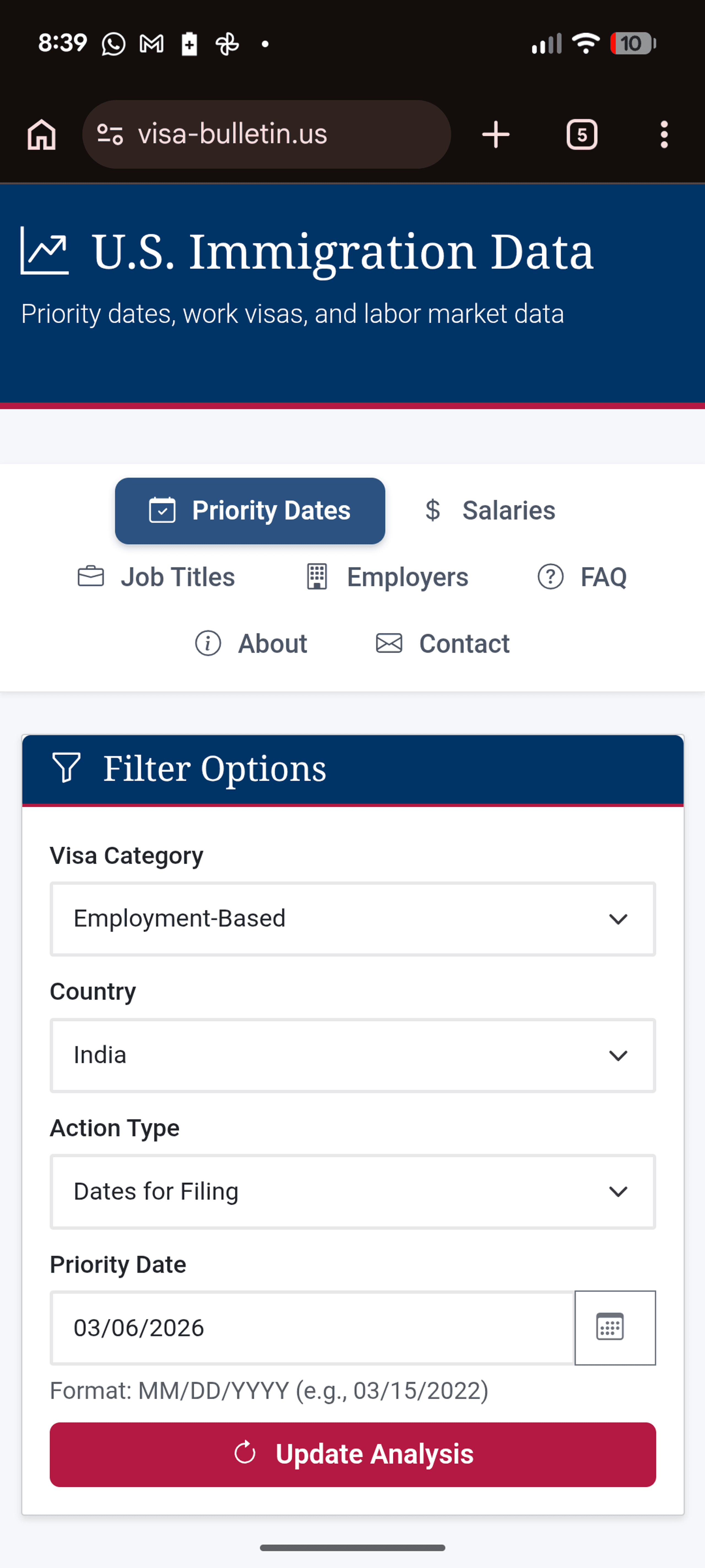 US Visa Bulletin Tracker