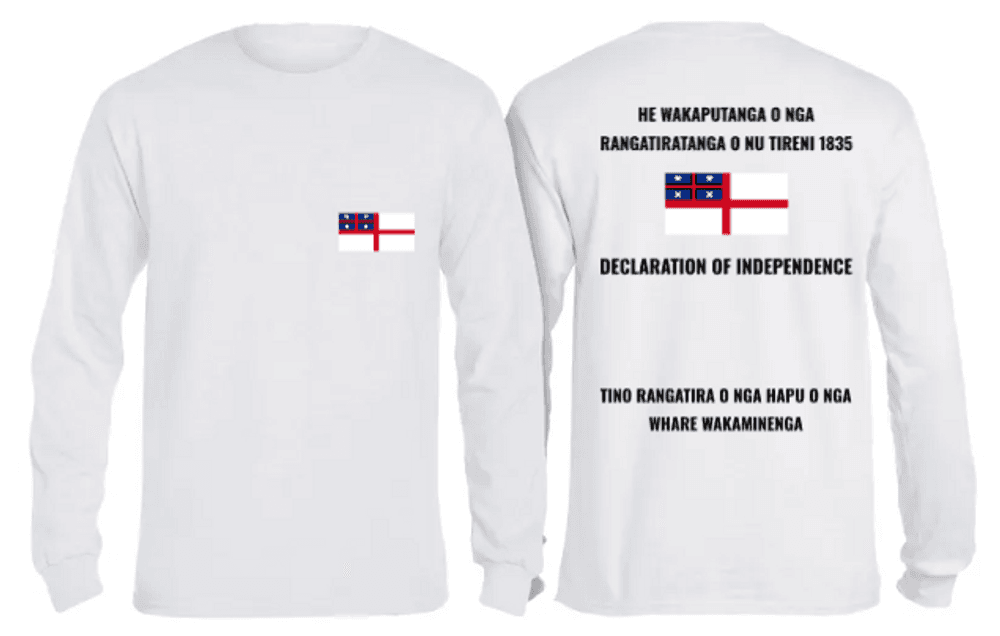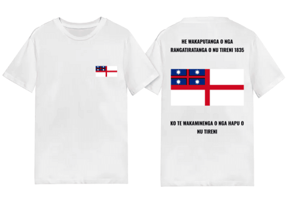 A free t-shirt featuring the United Tribes Flag, representing He Wakaputanga