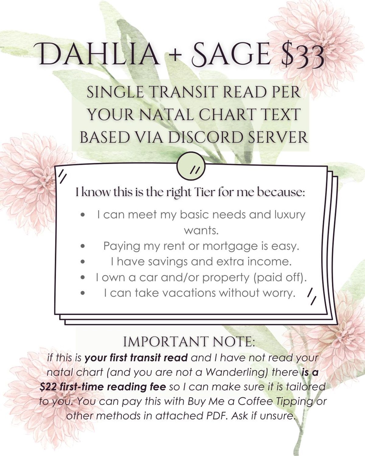 Sage Tier + Dahlia Single Transit Read (Please Read Criterion)