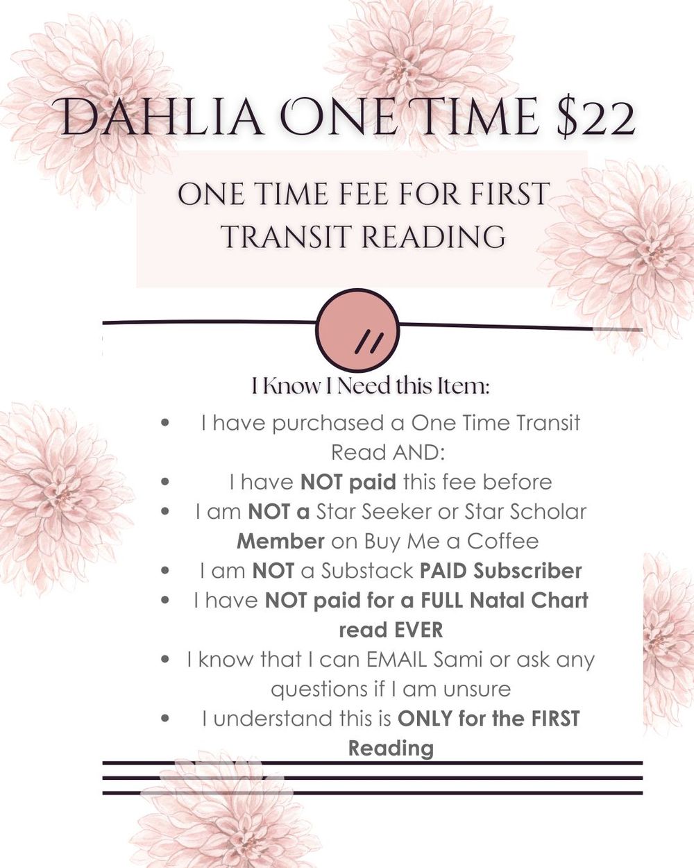 DAHLIA ONE TIME FEE (Transit Read)