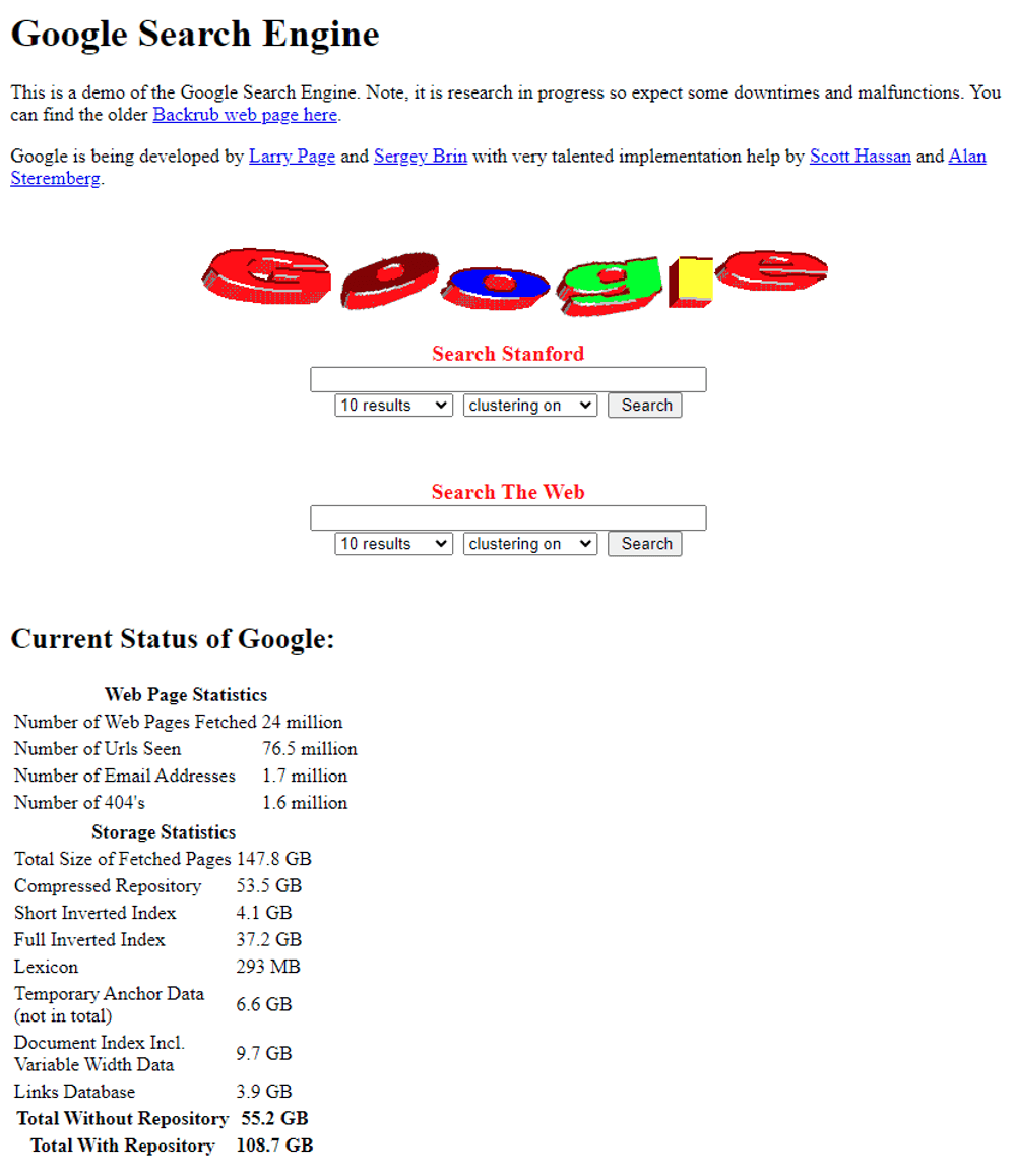 Google Search Engine Demo in 1997