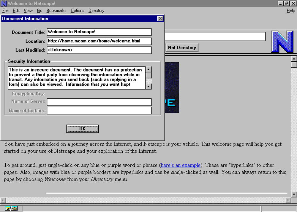 Netscape Navigator 1.0 in 1994