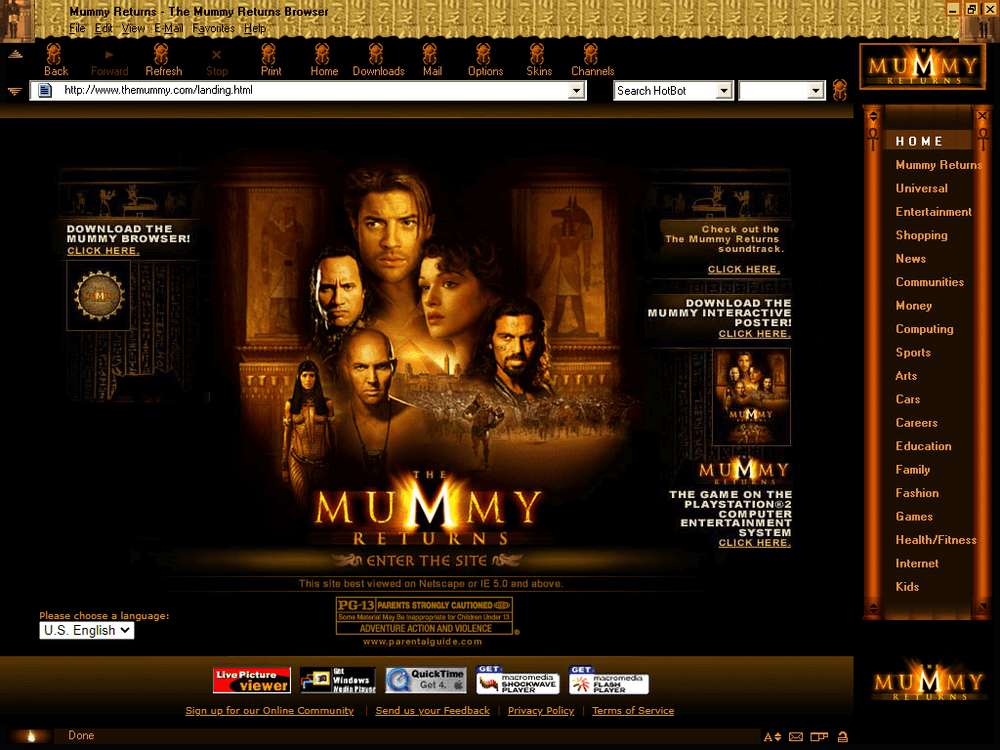 The Mummy Returns Web Browser in 2001